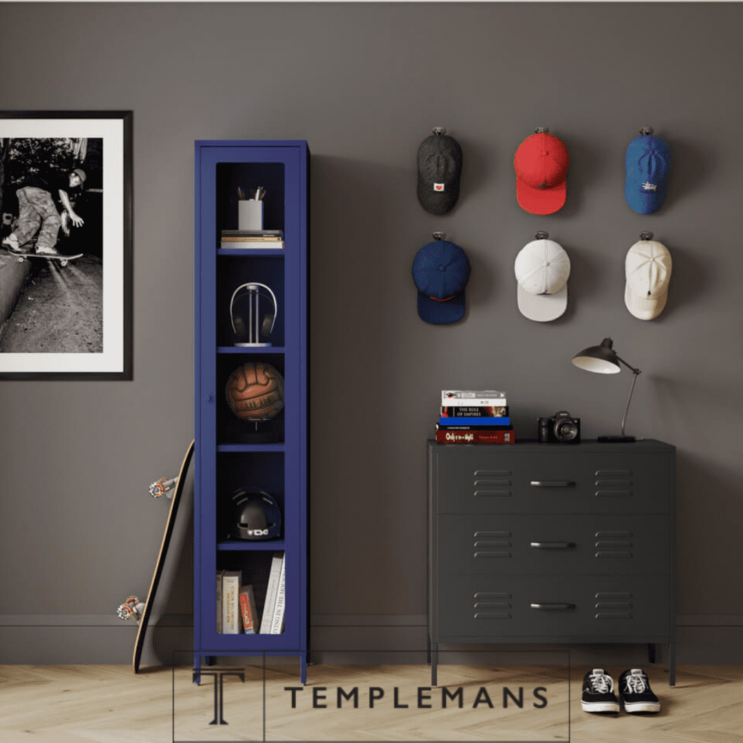 Industrial Style Slim Steel Cabinet – Classic Blue