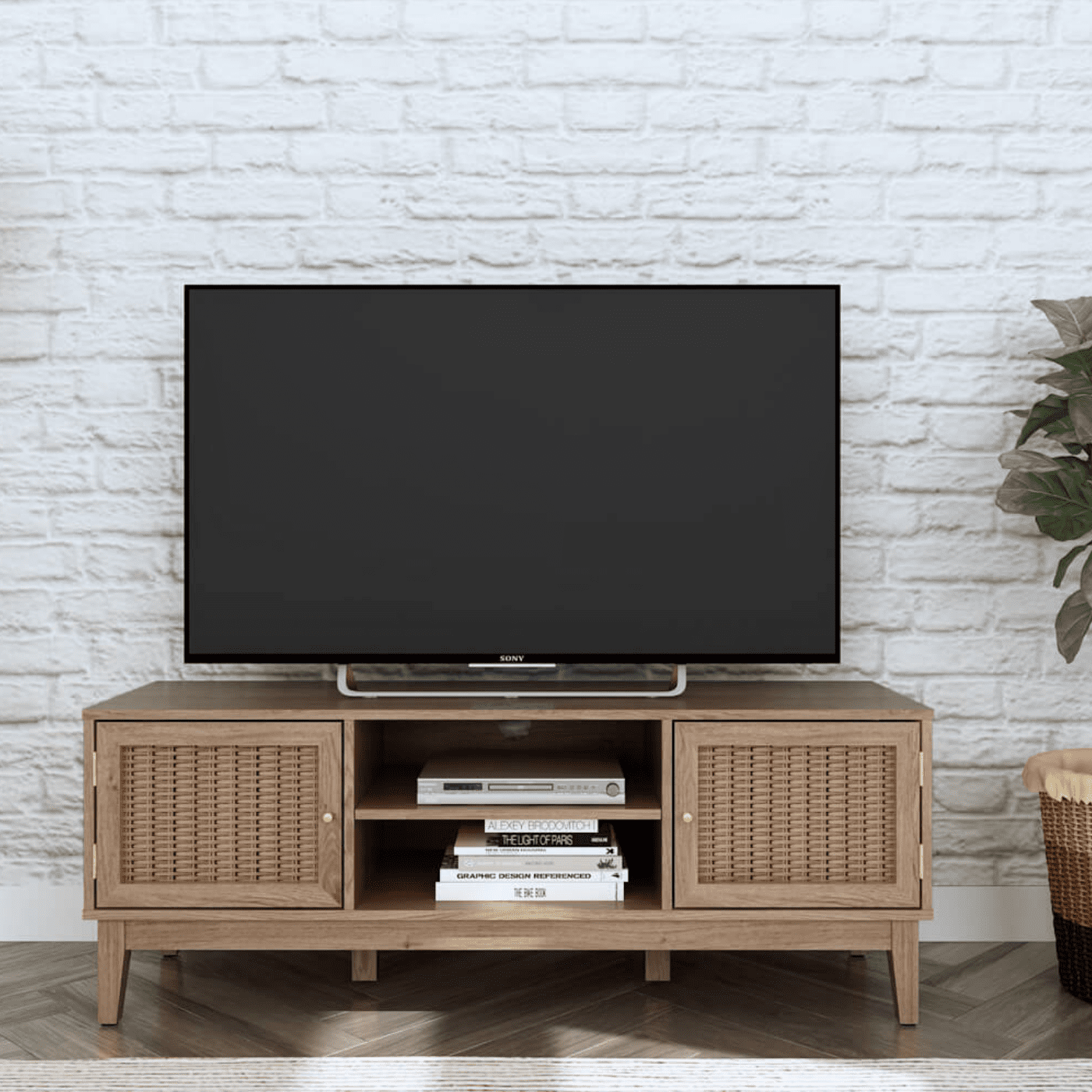 The Toulouse Oak Effect Media Unit offers a modern yet boho vibe to your decor. A substantial wooden framed piece with on-trend rattan fronts, complete with gold effect fittings and handles to add that little extra luxe detail.